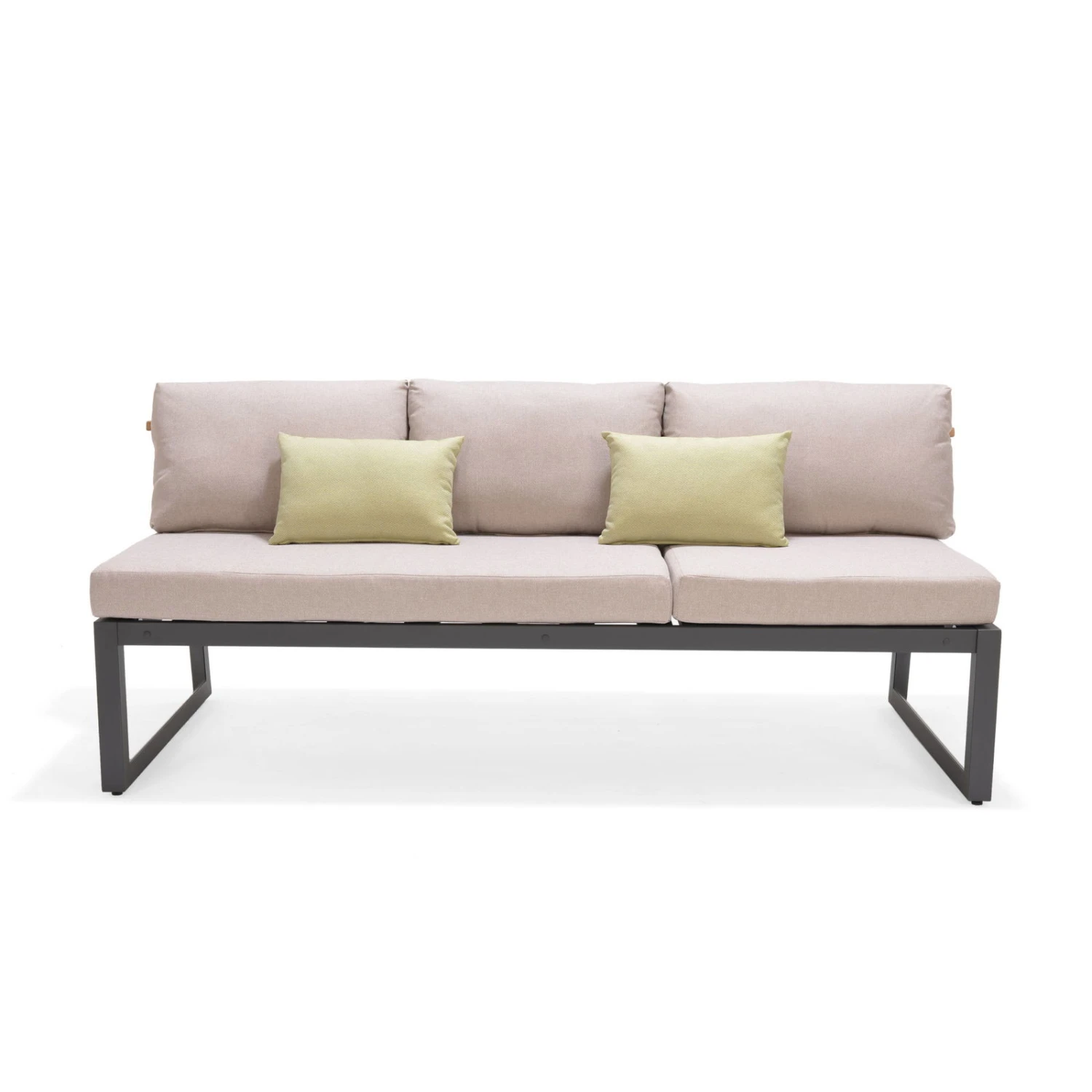 Genießen Sie einen Blick ins Grüne und profitieren Sie dank der Dining-Bank ‚Jimmy‘ von ausgezeichnetem Sitzkomfort. Der Dreisitzer im angesagten Industrial Style überzeugt mit einem höhenverstellbaren Rückenteil und ist in der Mitte bis zu einem Gewicht von 160 Kilogramm belastbar. Die witterungsbeständigen Auflagen mit Bezug aus Olefin sind im Lieferumfang inklusive.