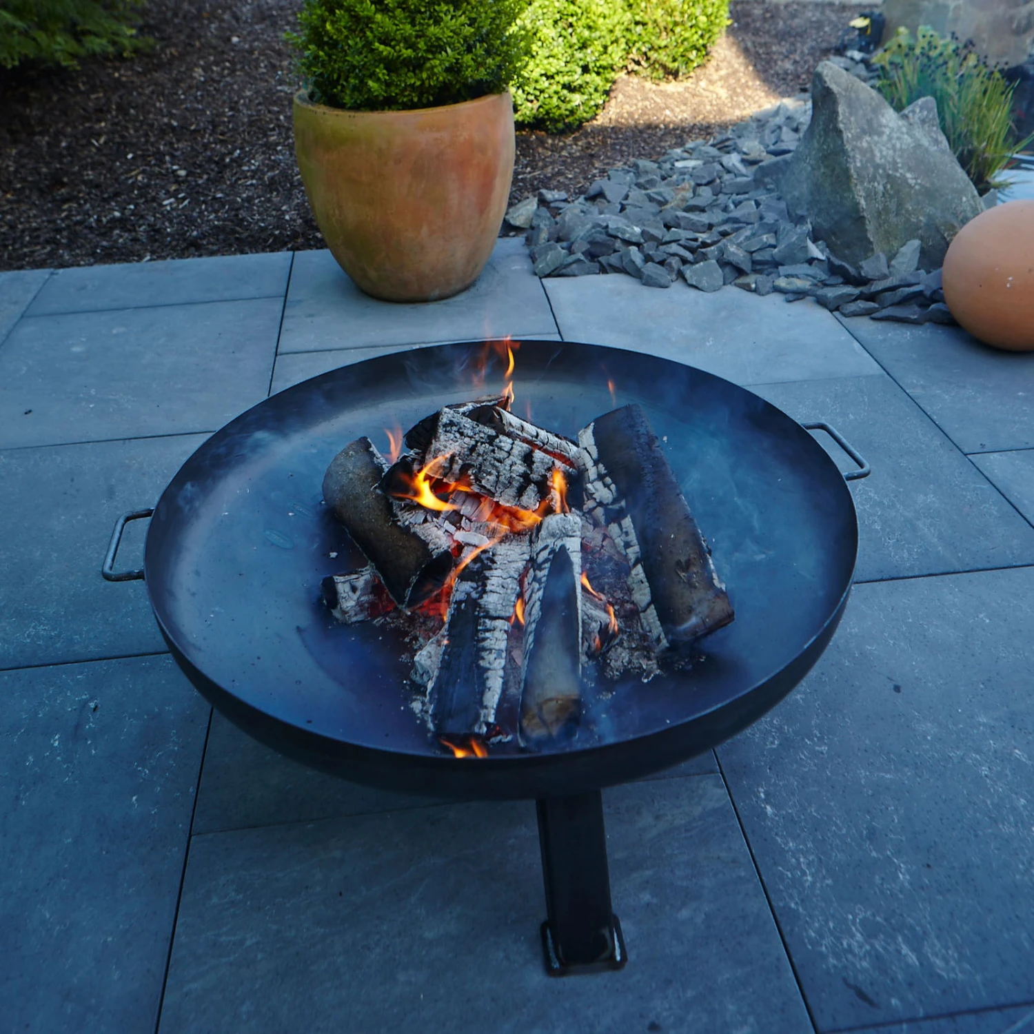 Diese runde Feuerschale aus dem Hause Buschbeck lässt im Handumdrehen outdoor eine rustikale, romantische Stimmung entstehen. Die Feuerstelle aus strapazierfähigem Eisen überzeugt mit hoher Standsicherheit und ist für unterschiedliche Brennstoffe wie Holz oder Kohle gleichermaßen hervorragend geeignet.
