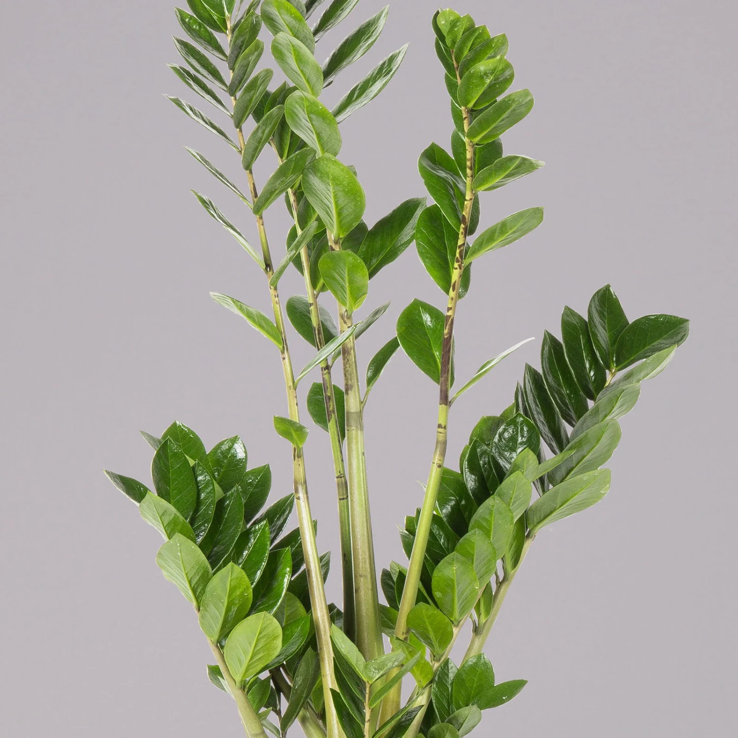 Die Glücksfeder (Zamioculcas zamiifolia), auch fälschlicherweise als Zamie bezeichnet, ist eine ebenso attraktive als auch absolut unverwüstliche Zimmerpflanze, die mit den meisten Standorten zurecht kommt und für Leute ohne grünen Daumen bestens geeignet ist. Charakteristisch sind die unpaaraig gefiederten Blätter, bei denen die Blattachse zu einem verdickten Speicherorgan umgewandelt ist und so oft irrtümlich für die Triebe der Pflanze gehalten wird. Die einzelnen Fiederblätter sind elliptisch und zugespitzt, mit kräftig dunkelgrüner Farbe und glänzender Oberfläche. DIe Glücksfeder wächst aufrecht bis leicht überhängend und kann eine Höhe von bis zu 80 cm erreichen.