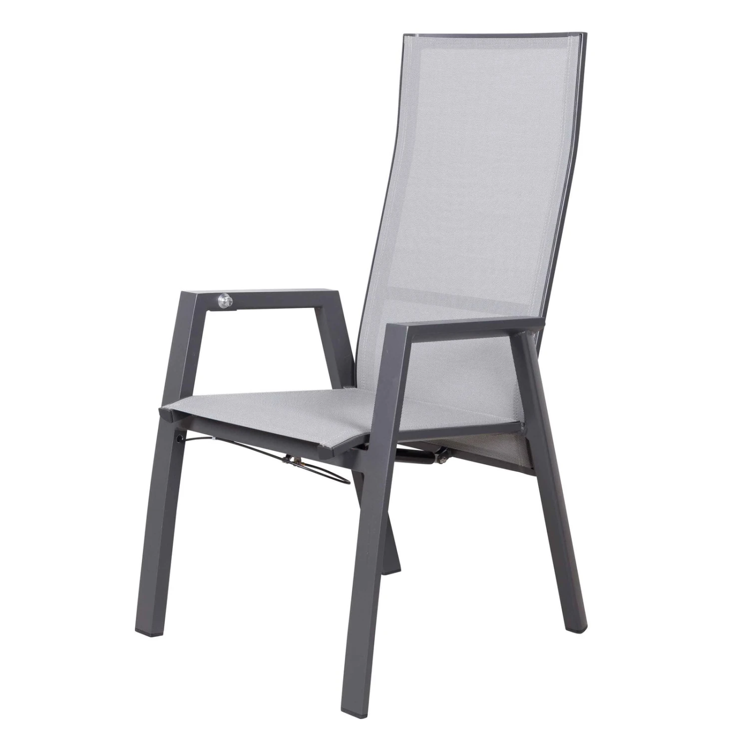 Kaum ein anderes Möbelstück bietet so viel Komfort wie ein Hochlehnersessel. In dem Sessel ‚Iris‘ sitzen Sie rückenschonend und entspannt. Das Besondere an diesem Modell: Sie können die Rückenlehne dank einer integrierten Gasdruckfeder stufenlos und ohne Mühe je nach Stimmung und Bedarf einstellen. Lassen Sie die Seele baumeln und lehnen Sie sich ganz zurück. Oder stellen Sie die Rückenlehne des Sessels ‚Iris‘ aufrecht, um an Ihrem Laptop zu arbeiten oder zu speisen. Die Materialkombination von Alu und Polyester sorgt dafür, dass dieses Möbelstück zugleich leicht und robust ist. Der Sessel eignet sich für den Einsatz im In- und Outdoor-Bereich gleichermaßen und ist außerdem pflegeleicht.