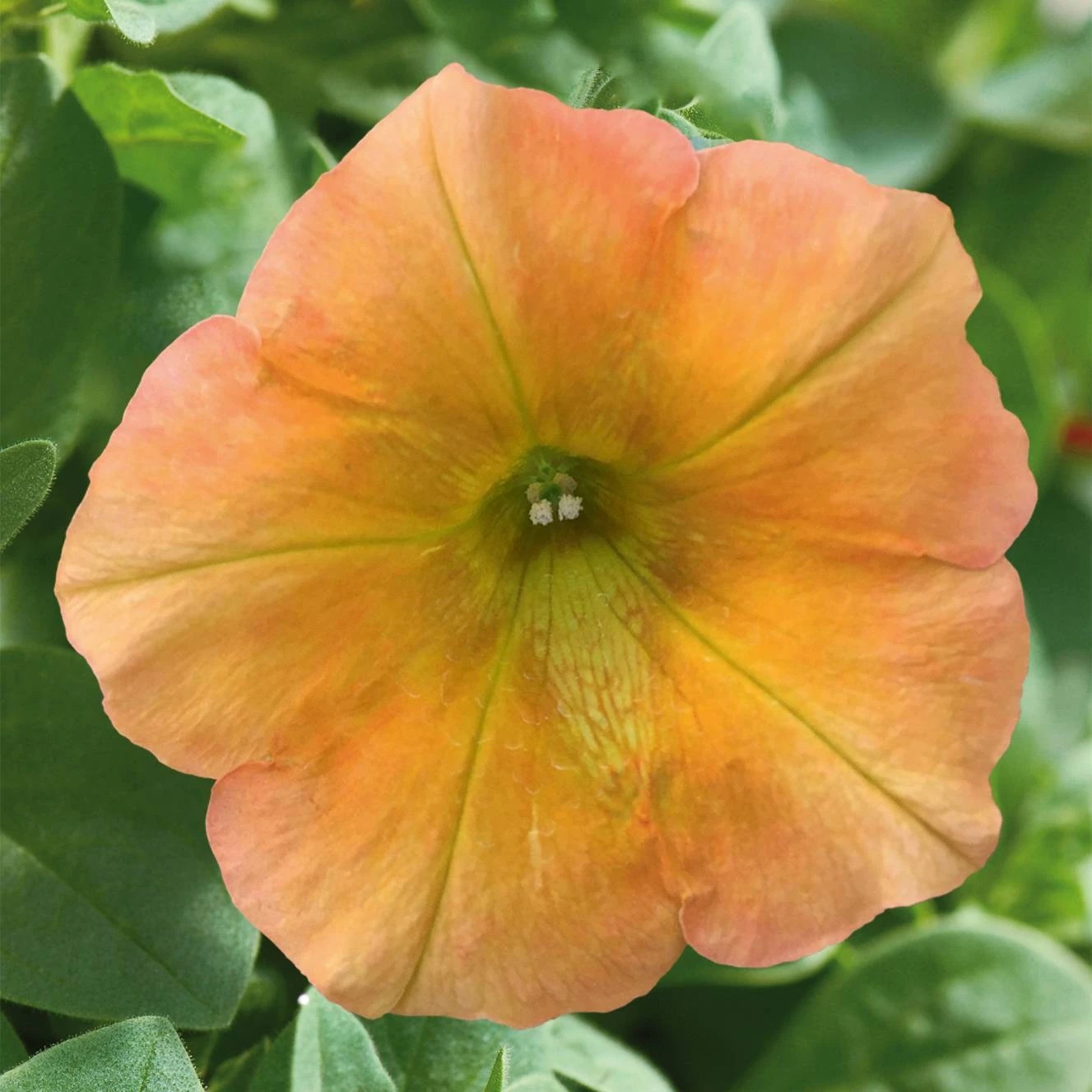 Die großen, trompetenförmigen Blüten in Orange-Gelb, bringen von April bis Oktober Abwechslung in Ihr Zuhause. Die Petunie blüht so üppig, dass die zahlreichen, trichterförmigen und großen Blüten das Blattwerk optisch fast vollständig überdecken.