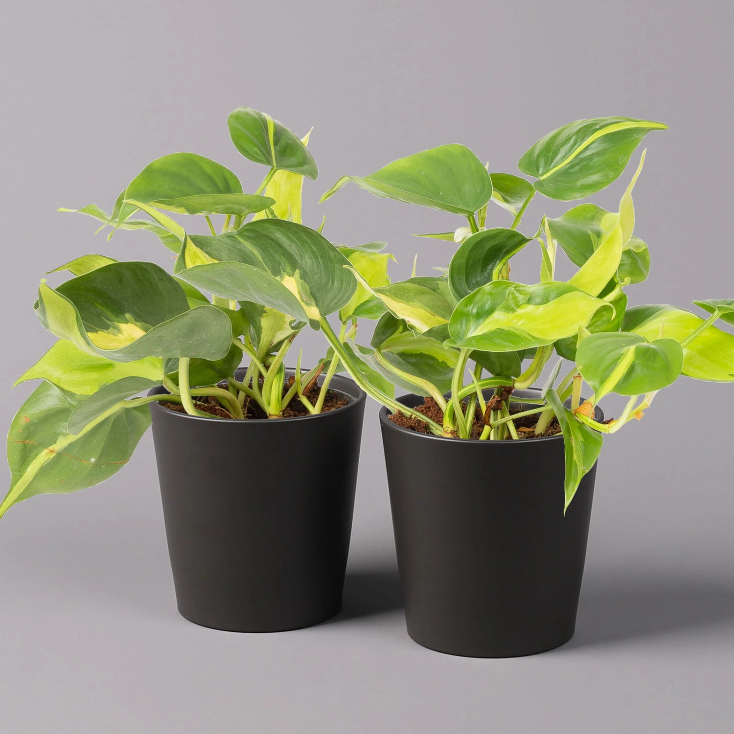 Philodendron ‚Brasil‘ In Keramiktopf Dallas Anthrazit, Topf-Ø 12cm, 2er-Set