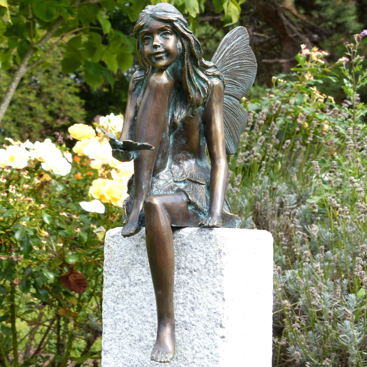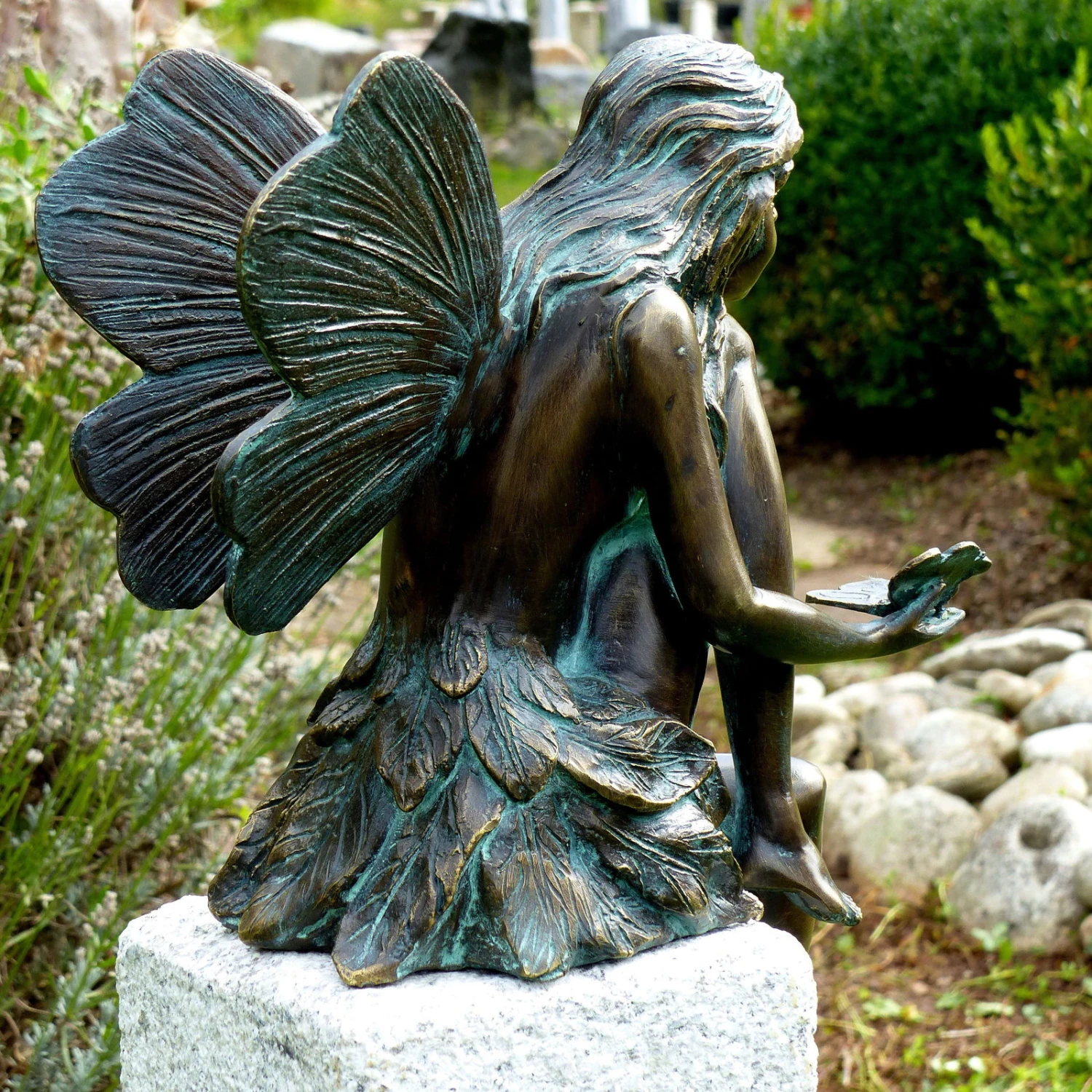 Rottenecker Fee Sitzend Mit Schmetterling, Bronze, 36 X 13 X 25 Cm