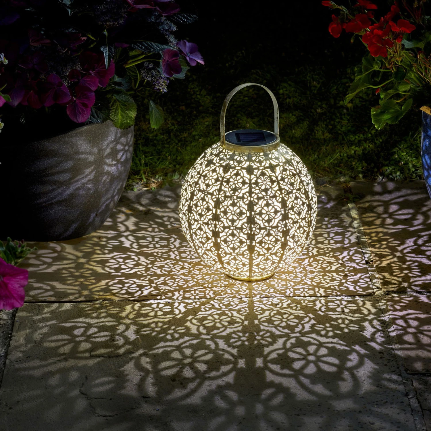 Solarlaterne Damast, Creme, 23,5 X 22,5 Cm